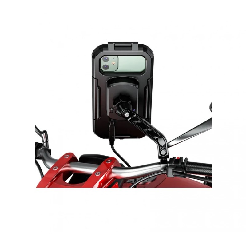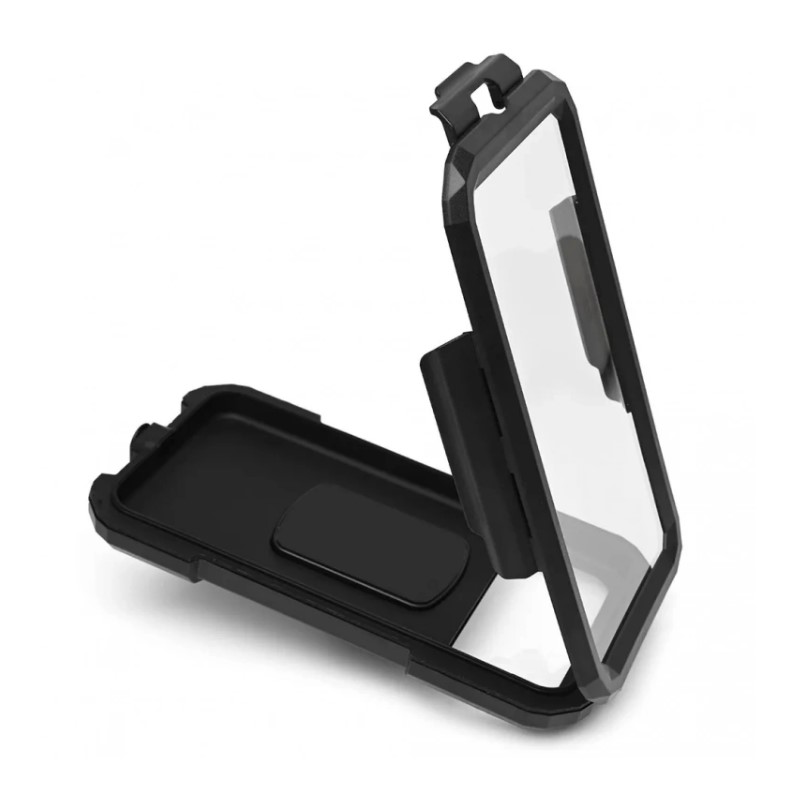 Это прежде всего удобство и безопасность! Кроме того, это водонепроницаемый держатель для телефона с жестким корпусом и гибким стеклом, отлично переносящим прикосновение к дисплею, так же имеет внутреннюю мембрану, превосходно защищающую ваш телефон от дождя, брызг и пыли, однако не следует рассматривать его , как полностью водонепроницаемый (например для подводной съемки ).