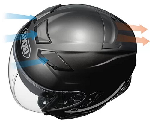 - Ценное время, проведенное в аэродинамической трубе SHOEI, позволило значительно улучшить вентиляционные характеристики J-Cruise II. Дополнительное впускное отверстие в верхнюю вентиляционную систему увеличило объем воздуха, поступающего в шлем, примерно на 30%. Кроме того, новая запатентованная конструкция верхнего воздухоотвода улучшила отвод горячего воздуха на 20%.